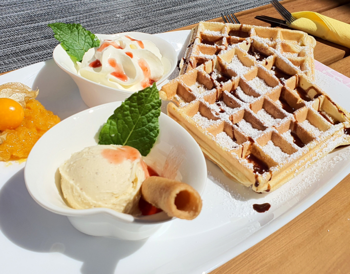 Vegetarisches Frühstück8,30€ 1 Butter-Croissant, 1 Brötchen, 4’lei Käsevariationen, hausgemachter ...